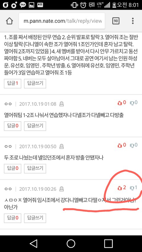 프듀 2번보면 도저히 모를수 없는 질문이고 캡쳐보면 젤밑댓에 떨어져서 그런거 아냐 이렇게 ㅅㅁㅇㅈ 만쓰면 너블인지 착각하며 유도성 답변해놓고 위에 댓글도 그런 내용이고 저런답변 마치 우리가 쓴것처럼 그부분만 내용 따서 다른데다 글을 쓰던데 그리고 추천2개 박힌것만 봐도 확실히 ㅇㄱㄹ 쓴글인것 같아 유입 질문인지는 잘보고 판단해서 ㅅㅁㅇㅈ 요구하면 될듯