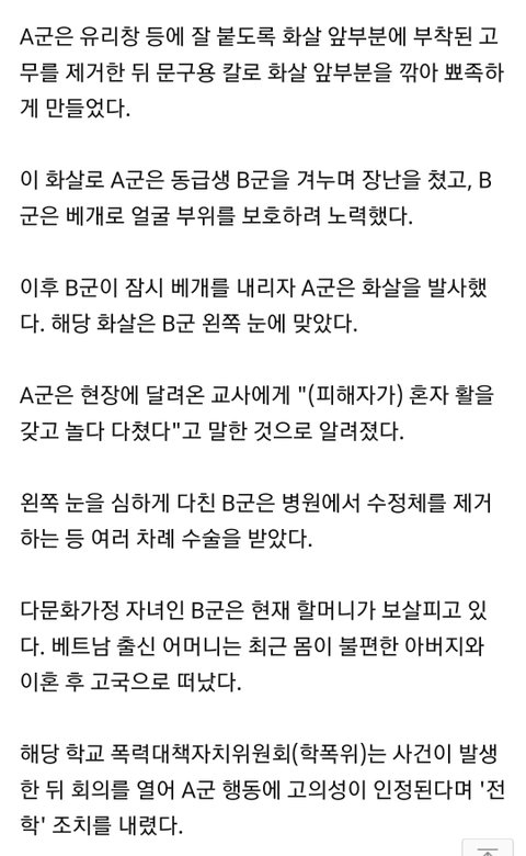 아무 이유없이 눈에 화살이 날아 박힌 아이의 상처가