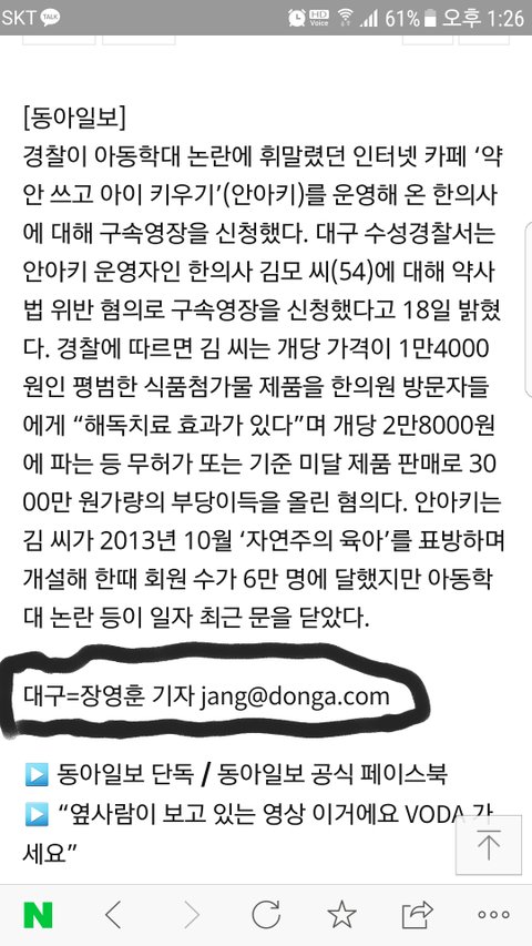 어젯밤 8시쯤 안아키 김원장 구속영장 뉴스기사가 하나 떴음