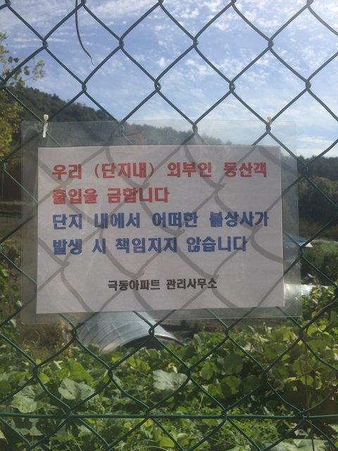 계속 "산책로로 다니지 마요.!!!" 하면서 엄청 기분 나쁘게 오만상을 다쓰고 눈을 부라리면서 소리만 빽빽치길래