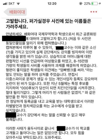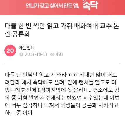 배화여대 사건 알아?? 지금 난리남 페북에도 엄청 돌던데.. 저런새끼가 교수라니..세상 말세다 ... 미친 듯..