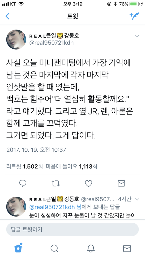 보다시피 ‘강동호 팬’이 쓴 글 그대로 갖고옴