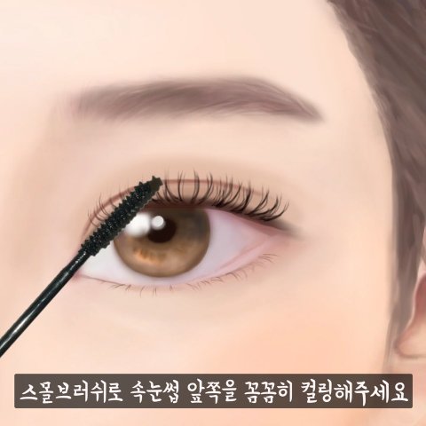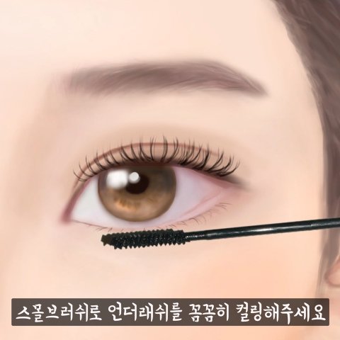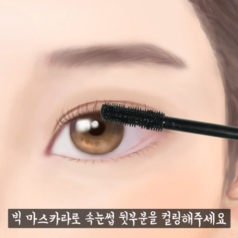 다음으로 솔이 큰 마스카라로 속눈썹 뒷부분과 중간부분