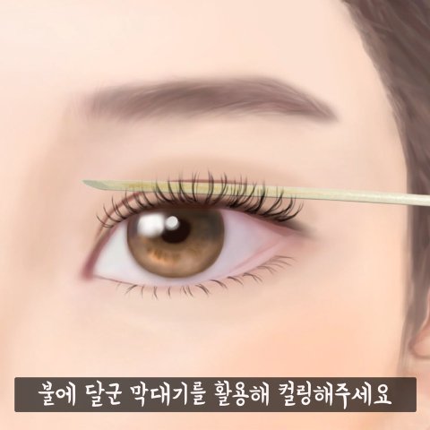 이게 뽀인트 인데, 나무 막대기를 불에 달궈 속눈썹을 고데기 해주면 됨