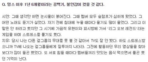 그리고 슬럼프를 겪게 되었어.. 이건 멤버들이 한 인터뷰인데 인터뷰에서 이렇게 말한 정도면 실제로는 더 슬프지 않았을까 추측해.ㅠㅠ