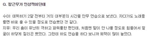 동영상으로 보기에도 엄청 힘들어보이지않아? 내가 가장 좋아하는 체이스미 안무는 몇 달간 연습했대 ㅠㅠ 힘든 노력을 해서 나온 무대들은 정말 멋있는 것 같아
