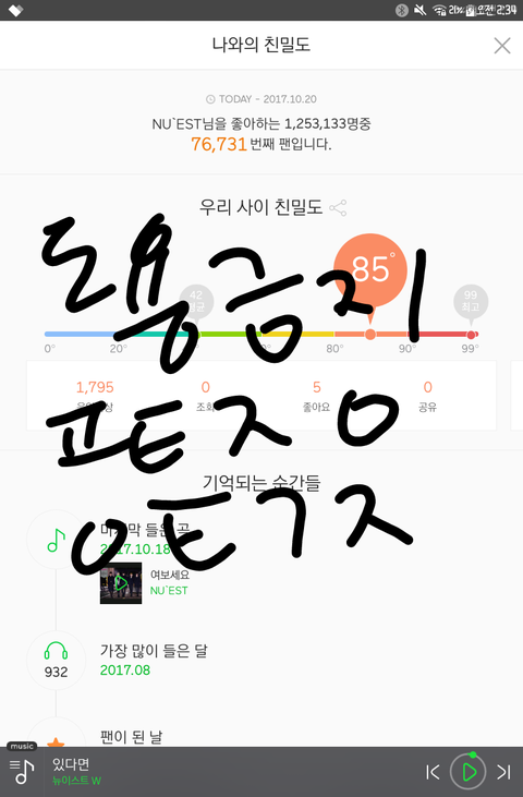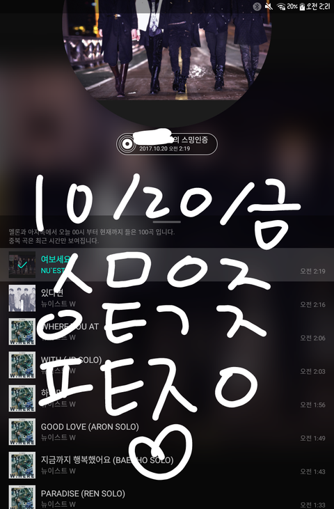 오늘은 여러모로 뜻깊은 날이지? 데뷔 이후 2045일만에 첫 1위를 하고 1위 소식에 앞서 종현이의 마스터열쇠 출연 소식에 한번 놀라고 마2마 후보에 올랐다는거에 대박을 외쳤는데 기쁨을 누릴 틈도 없이 이어지는 음방에서 데뷔 이후 첫 1위...ㅠㅠ 2017년 10월 19일 목요일 절대 잊지 않을거야