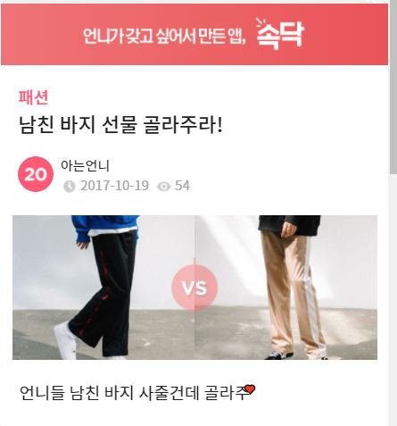 전 20대 초반이고 남친은 30대 초반이예요남친과는 11살 차이가 납니다.얼마전 남친 생일이라 제가 젊은 친구들 스타일로 바지를 사줬어요..통바지인데 길이가 좀 긴 스타일로 남친에게 사줬더니남친이 내가 나이가 몇개인데 그런걸 입고 다니냐 합니다... 생각이 짧다네요..;;아니 전 그냥 좀 어려보이고 패피 같은 느낌으로 오빠가 입으면 좋을 것 같아서사줬더니.. 저런 욕을 들었네요....제가 그렇게 잘 못 한건가요?색깔도 고민고민하다가 어두운 걸로 사줬는데... 속상해요