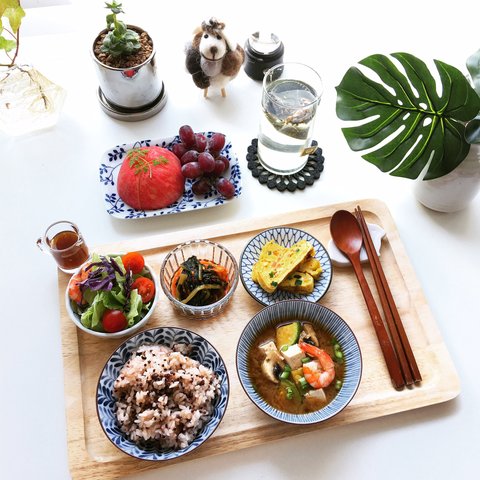 마지막으로 요즘 빠져있는 일본식기들로 밥상.