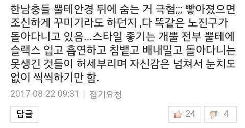 이악물고 아닌데? 너 못생겼지? 너 그래서 연애못하는거지?? ㅇㅈㄹ 떠는게 훨씬 더 추해보여....