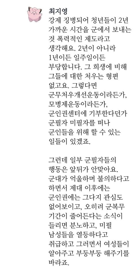 여자들도 군대가라는 군무새들의 심리