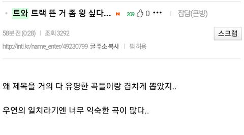 내 기준 대놓고 욕하는 판이나 비꽈서 말하는 인티나 거기서 거긴데? 차라리 대놓고 말하는 판이 낫지 찌질하게 저게 뭐야...ㅋㅋㅋ