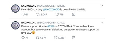 그리고 또 그들이 우리들의 튜토리얼, 투표관련 트윗들을 보지 않으면해서 블락했어. 하지만 그 독려계정들은 (윗 첨부사진들처럼) 이 이유들을 무시하고 우리가 그들을 단지 미워해서 블락한 것 처럼 저쪽 팬덤을 오해하게했어. 그래서 아까 그 해시태그가 만들어진거고.