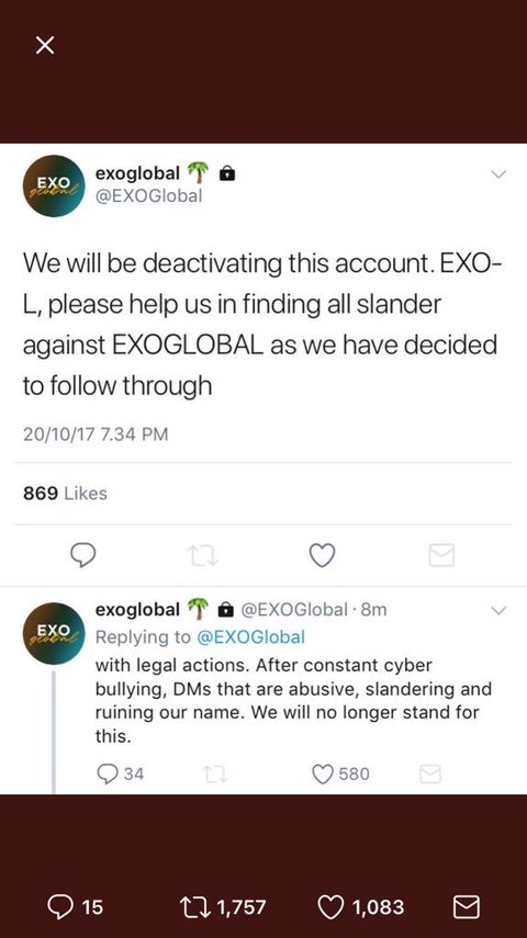그래서 외랑둥이들이 저쪽 팬덤한테 "블락은 계정정지의 원인제공이 아니다" 라는 걸 알려줬지만 자기들이 직접 비활성화한다는 트윗을 올렸어.
