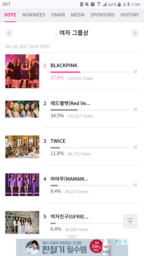 2017 MAMA 여자그룹상 후보 국내 4세대 걸그룹 탑이라는 여마트레블 올랐는데 이 중에 제일 팬덤 약한게 블핑 아니야??