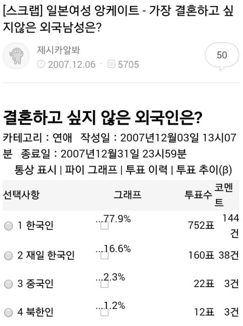 일본여성 앙케이트 -가장 결혼하고 싶지않은 외국남성은?
