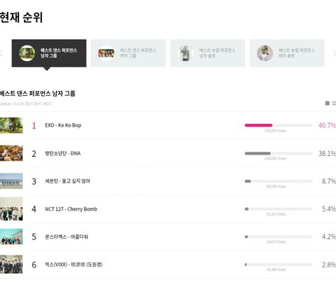 우리 이거라도 타야 해... 올해의 노래랑 댄스 퍼포먼스 남자 그룹 체리밤하고 나머지는 빨리 빨리 아무거나 클릭해 계정 여러개 만들기 엄청 쉬우니까 열심히 하자