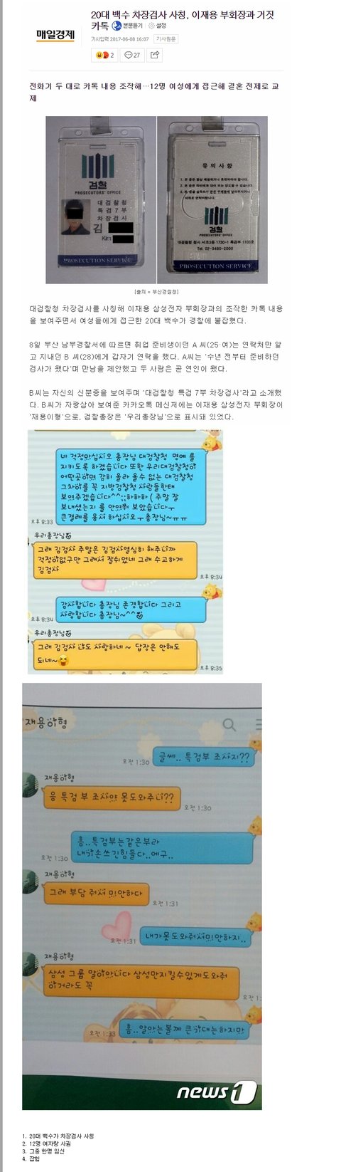 어떻게 20대가 일개검사도 아니고 대검 차장검사를 사칭하는데도 죄다 속는거죠??