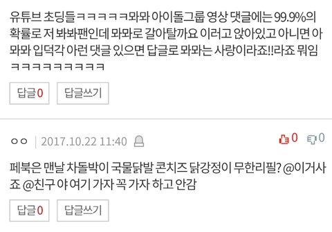유튜브: 00이 너무 좋아(이모티콘) /저 ㅂㅂ팬인데 00너무 잘생겼어요ㅜ (답댓) 앗 감사합니다♥ 우리 00이 예뻐해 주세요 / ㅂㅂ도 잘생겼어요!!