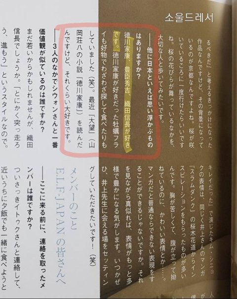 A. 도쿠가와 이에야스(덕천가강), 도요토미 히데요시(풍신수길), 오다 노부나가(직전신장)를 좋아합니다. 도쿠가와 이에야스를 좋아해서, 그가 좋아했던 굴튀김을 일부러 찾아가서 먹기도 했습니다. (중략)