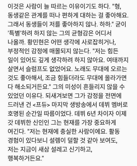 둘 다 ㅊㅊ는 짹이야! 문제 되면 알려줘 ㅠ 민현이는 예전이나 지금이나 진짜 긍정적이고 생각하는게 멋있는거 같아. 팬인걸 떠나서 민현이 성격 정말정말 부러워ㅠ 나는 그렇지 못 해서...