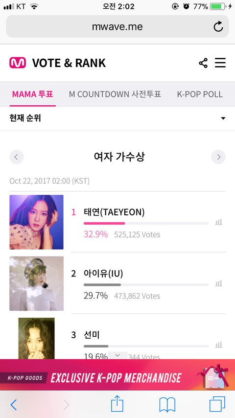 여자가수상 부문이 투표 수 차이 너무 많이 나 격차 좁힐 수 있으니까 투표 열심히 해줘ㅠㅠ