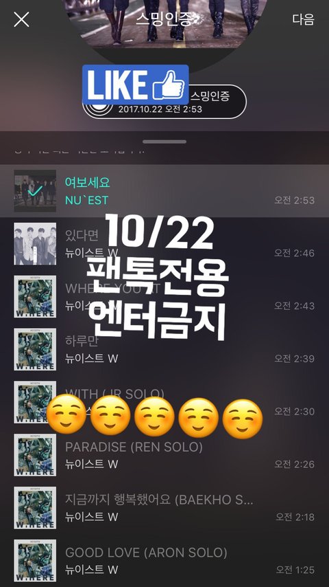 원아페 보러 가는 러브들 이쁘게 잘보고 응원 잘하구오구, 언제나 러브곁엔 뉴이스트 그리고 러브곁에 러브도 있단걸 잊지마☺️❤️ 우리 함께가자