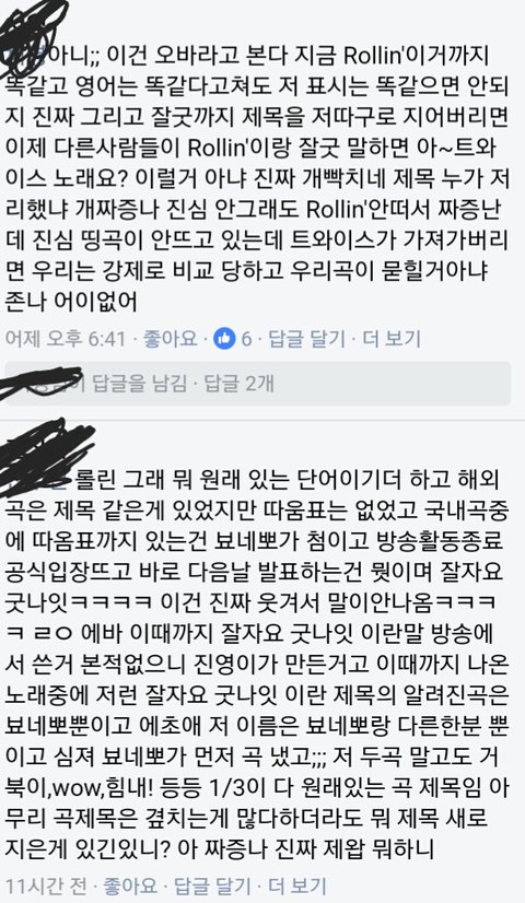 팬들이 그렇게 주장하던 rollin'이란 제목은 우리가 먼저 시작했고 따옴표 까지같냐!!!표절이네!! 라는 건 검색만 해봐도 알 수있음..^^ 외국노래엔 rollin'이라는 곡 천지에 국내가수 브레이브 걸스도 노래냈었네 그럼 비원에이포도 표절??