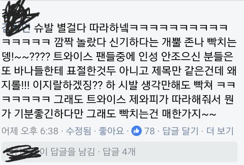 이런식으로 달렸는데 트와이스가 쓴 제목도아닌데 트와이스 머리채 잡는중 시그널 컨셉 나왔을때가 생각남ㅋㅋㅋㅋ 그때도 머리채 잡혔는데