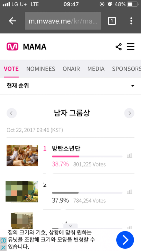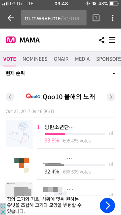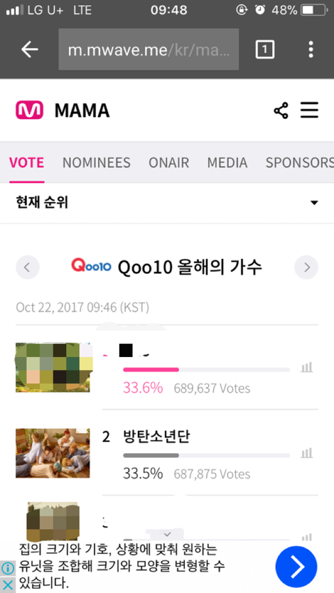올해의 가수 2위