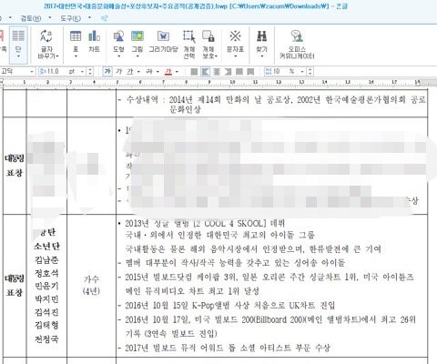 작년에는 문화체육관광부장관상 받았는데ㅠㅠ 일년안에 뭐이리큰거야 자랑스럽다ㅠㅠ