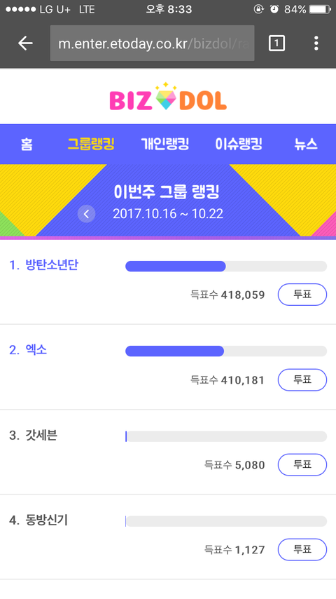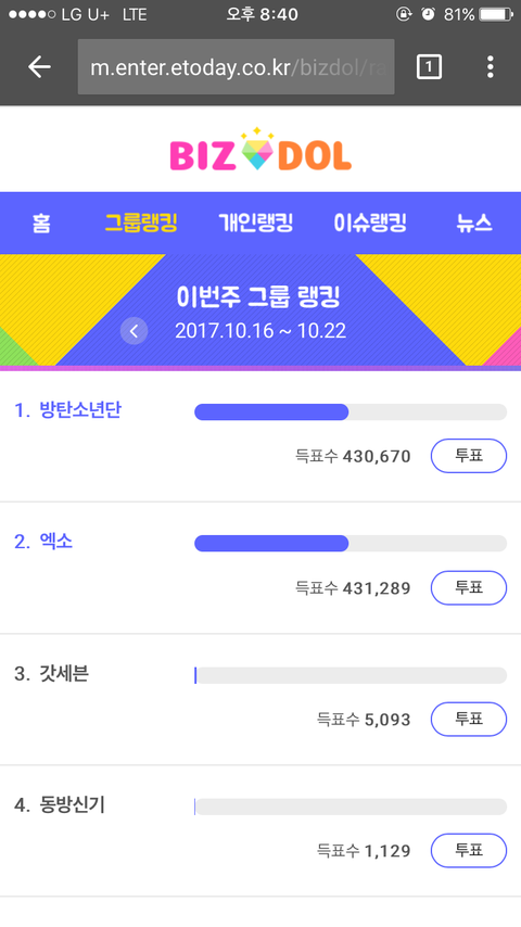야...표차이 줄어드는거 개무섭 ㅋㅋㅋ엑소엘 고생해따