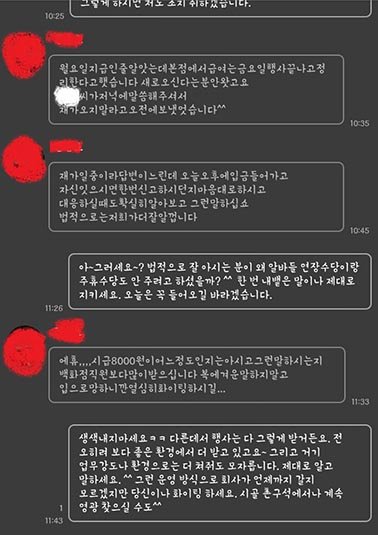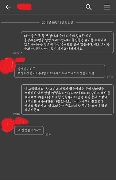 제가 일하면서, 그리고 사장아들이라는 사람이랑 카톡으로 대화하면서