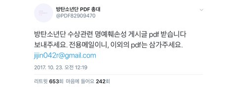 피뎊 총대님 수상관련 명예훼손성 전용 메일 열었으니까 여기로 피뎊 다보내