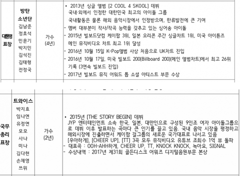 그렇게 까내리려 발악한다고 엑소가 후보가 아닌게 되나 엑소는 이미 3년전 장관상 수상경력 있고 청와대 초청 경력 있음~ 청와대 초청받은 사진 하나 첨부해줄게 이런식으로 타가수 치면서 비열하게 영업하는거 진짜 토나와 ㅠㅠ 어그로인척 하지말고. 이글은 어그로인척하는 병신일 수 있어도 그 글에 동조하는 년들은 진성이네 베플만 봐도. 아닌척 하는것도 스스로 오글거릴듯