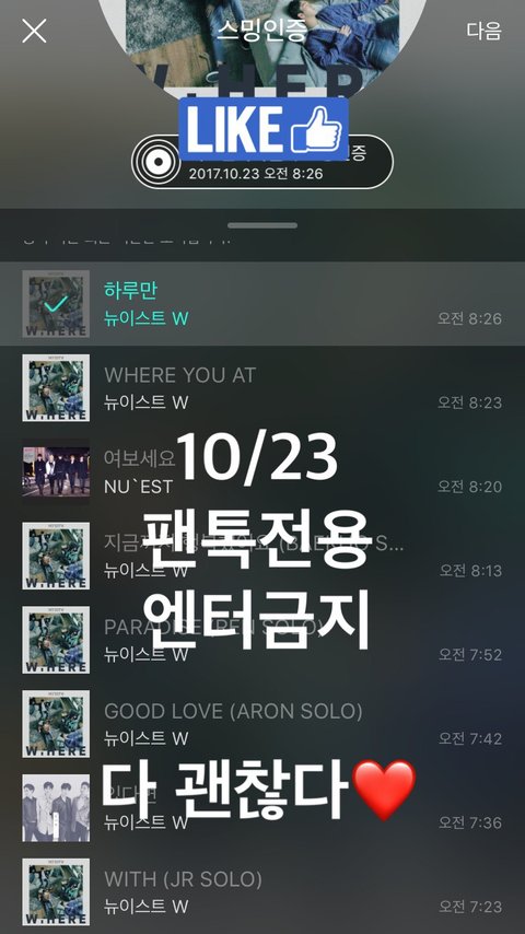 밑에는 내가 러브들과 그리고 우리 뉴잇애들에게