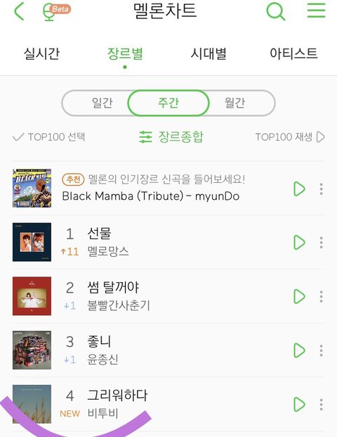 멜.론 그리워하다 주간4위,마레97진입
