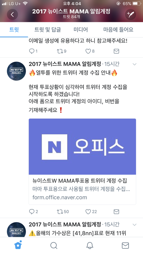우리 투표 열심히 하면서 중간중간에 짹 아이디 만들어서 보내면 좋을것 같아