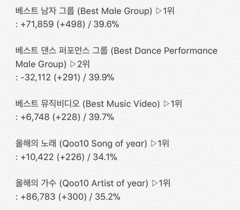 남자그룹상이랑 올해의가수는 십만표차 찍자