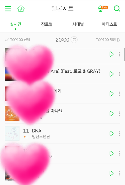 신곡 수록곡들이 빠르게 올라옴ㅠ