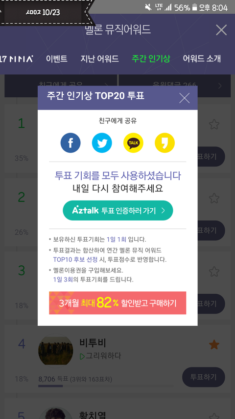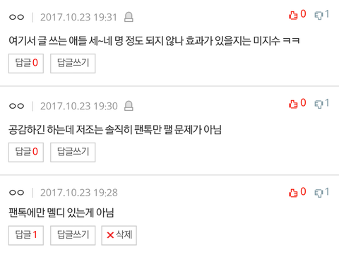 난 진짜 팬톡 멜디들은 다 투표 하는걸로 알고 저렇게 말했는데 어떤 한 멜디가 의견 다른 댓글을 한 사람으로 싸집어서 어그로 취급하길래 진짜 기분 나쁜건 맞음 그렇게 말했던 멜디야 양심있으면 뭐라말좀