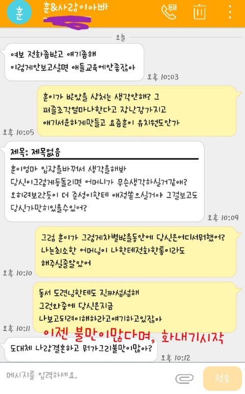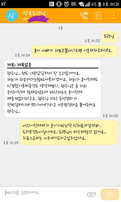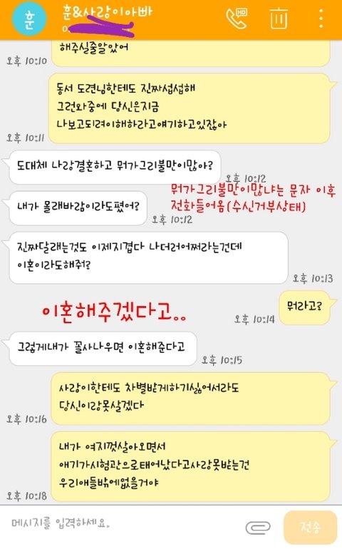 사실 이 글을 쓰기 40분전 남편에게문자가왔습니다.