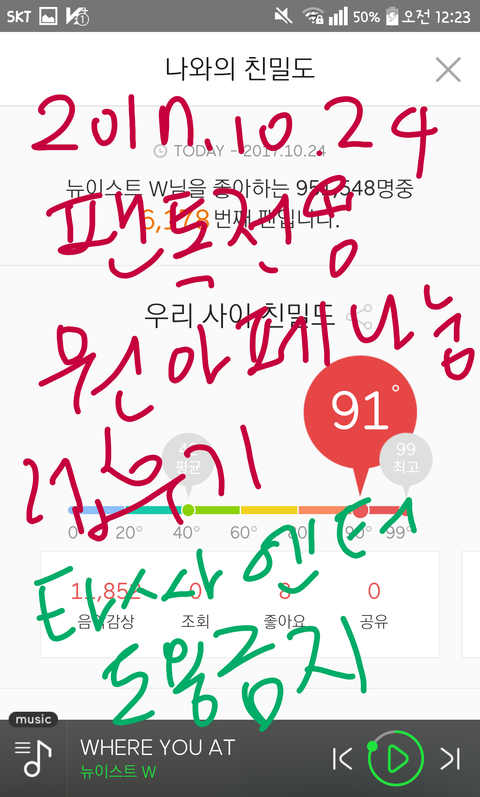 어제 원아페 갔다온 러브들, 안방 1열에서 응원한 러브들 모두 모두 짱짱이양♥♥ㅎㅎㅎ그럼 난 20000 로동하러 갈겡♥♥