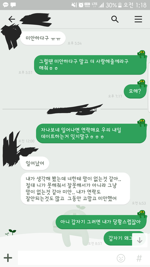 어 제 연애경험 중에 이렇게 어이없게 차인적은 처음이네요 저는 일단 17 남자이고요 전여친은 동갑입니다 얘는 친구의 소개로 알게돼었고 연락한지 한달만에 사귀게 돼었습니다 그렇게 행복한 날들을 보내고 있었는데 한 20일 되던날에 이 친구가 학교 수련회를 갖다왔습니다 그 주 토요일은 저의 생일 이었구요 암튼 이 친구가 금요일날 왔는데 그날따라 전화를 해도 별말이 없고 카톡도 씹는거에요 그래서 저는 수련회 갔다와서 피곤한가보다 생각하고 그냥 잤어요 어차피 다음날 데이트 하기로 했으니까요 그런데 아침에 데이트 할 생각에 행복하게 일어났는데 갑자기 이런 카톡이 와있더라고요 자기가 생각을 해봤는데 자기는 저한테 마음이 없는것 같다고 절대 제가 못해주거나 잘못해서가 아니라 그냥 저한테 마음이 없다네요... 아니 저는 뜬금없이 이게 무슨소리인가 했죠 그냥 마음이 없어졌다네요 이게 말이 되는소리입니까? 수련회 가기 전까지만 해도 카톡도 잘하고 전화도 매일하고 그랬는데 갑자기 마음이 없어졌다니요... 제가 친구한테 물어봤는데 수련회에서 무슨 일이 있었던것도 아니라네요 이렇게 저는 하루아침에 생일날 차인사람이 되어버렸네요 아무리 마음이 없어졌다고 그래도 생일날 차는 사람은 처음보네요 갑자기 마음이 없어졌다는것도 그렇고요... 여러분은 어떻게 생각하시나요?