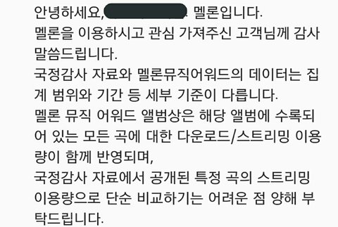 이 애가 문의 한 거 맞는 것 같은데? 짹에 글 쓴 애 거를 저장한다고 쳐도 사진이 가려진 상태에서 저장이 될 건데 가려진 곳이 확연히 차이 남 짹 거는 멜론을 이용해 주시고 인데 이 글에서는 멜론을 이용하시고 로 나와있고 이름도 저기는 님이 나와있는데 이 애가 올린 건 님 자도 안 보임