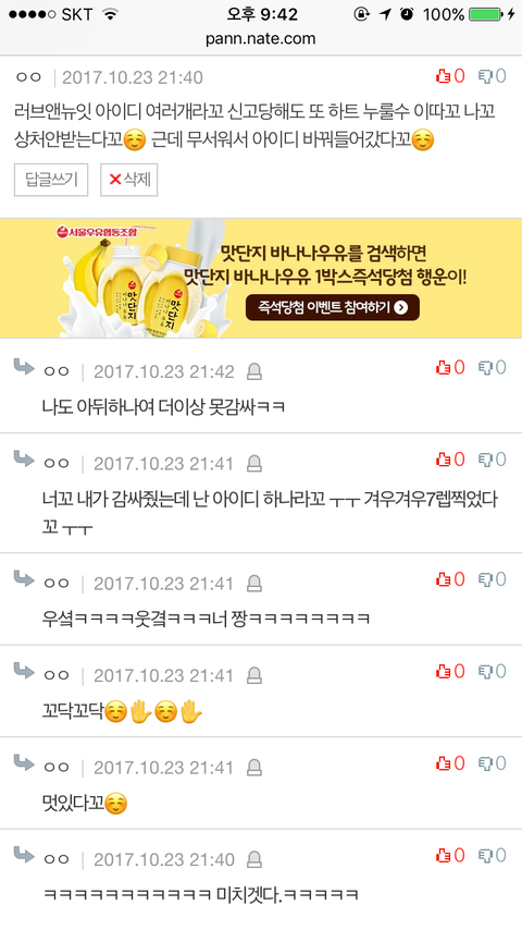 ✔️ 쁘앱에서 나꼬 홍보한다꼬 타박하고, 신고한다했던 타싸 러브 흥이라꼬 나꼬가 팬싸 팬밑 등 광탈하라꼬 기도할꼬라꼬☺️ 나꼬☺️ 뒤끝 심하다꼬☺️