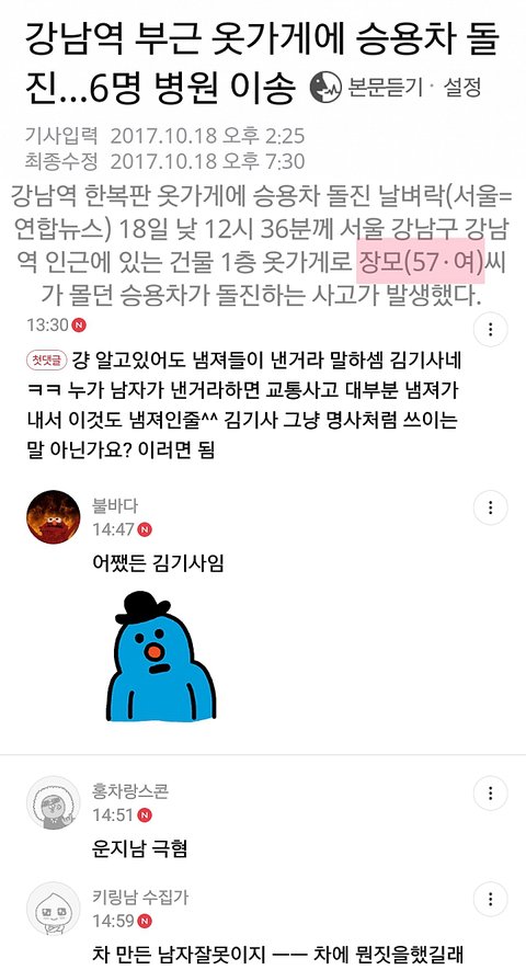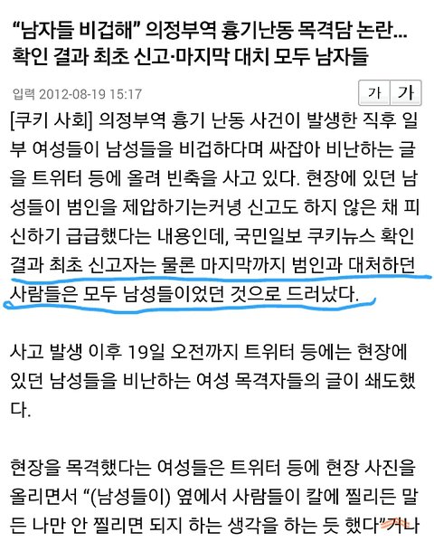 네이트에 기사가 뜸. 그러나 제목엔 어떠한 성별도 나타나있지 않음. 그저 '사람'이라고 명시함. 그럼 본문은 어떨까?