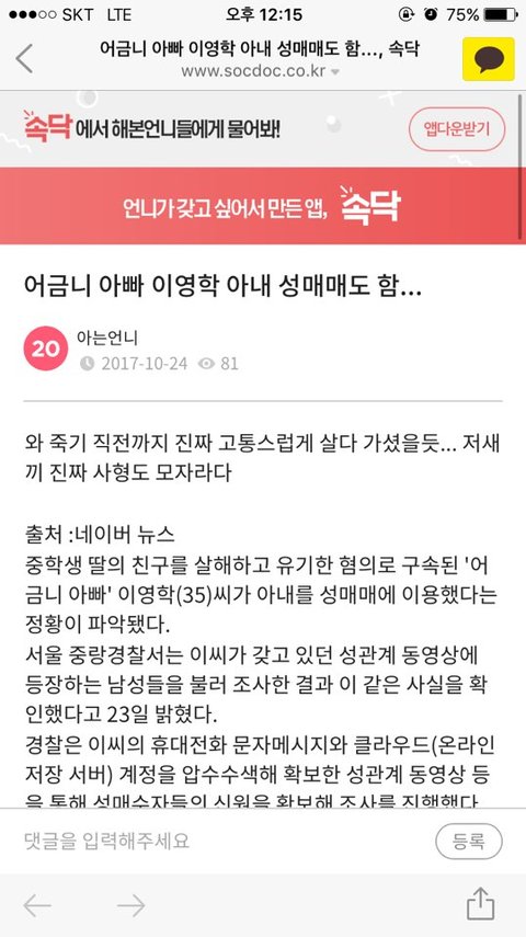 어금니아빠 이영학 부인 성매매도 시킴