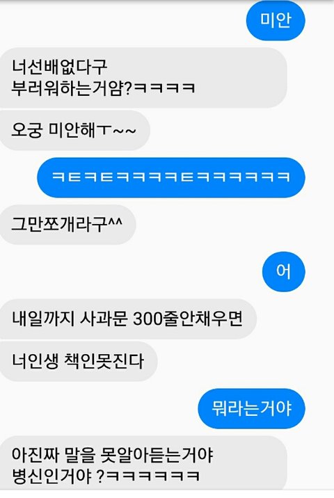 ++ 경찰에 신고하려고 엄마께 말씀드렸는데 엄마도 뭐 그런애가 다 있냐 그러고 경찰 신고하자 그래서 페메랑 말한거랑 그런거 증거 남기는 중이야 다들 도와줘서 고마워 진짜 안 봐줄거야