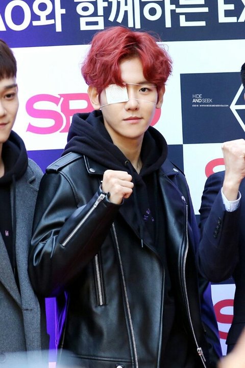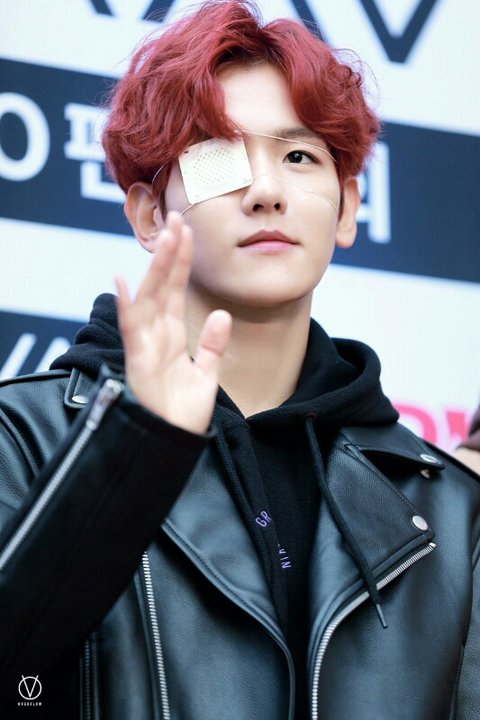 한쪽 눈 가린 백현이ㅠ